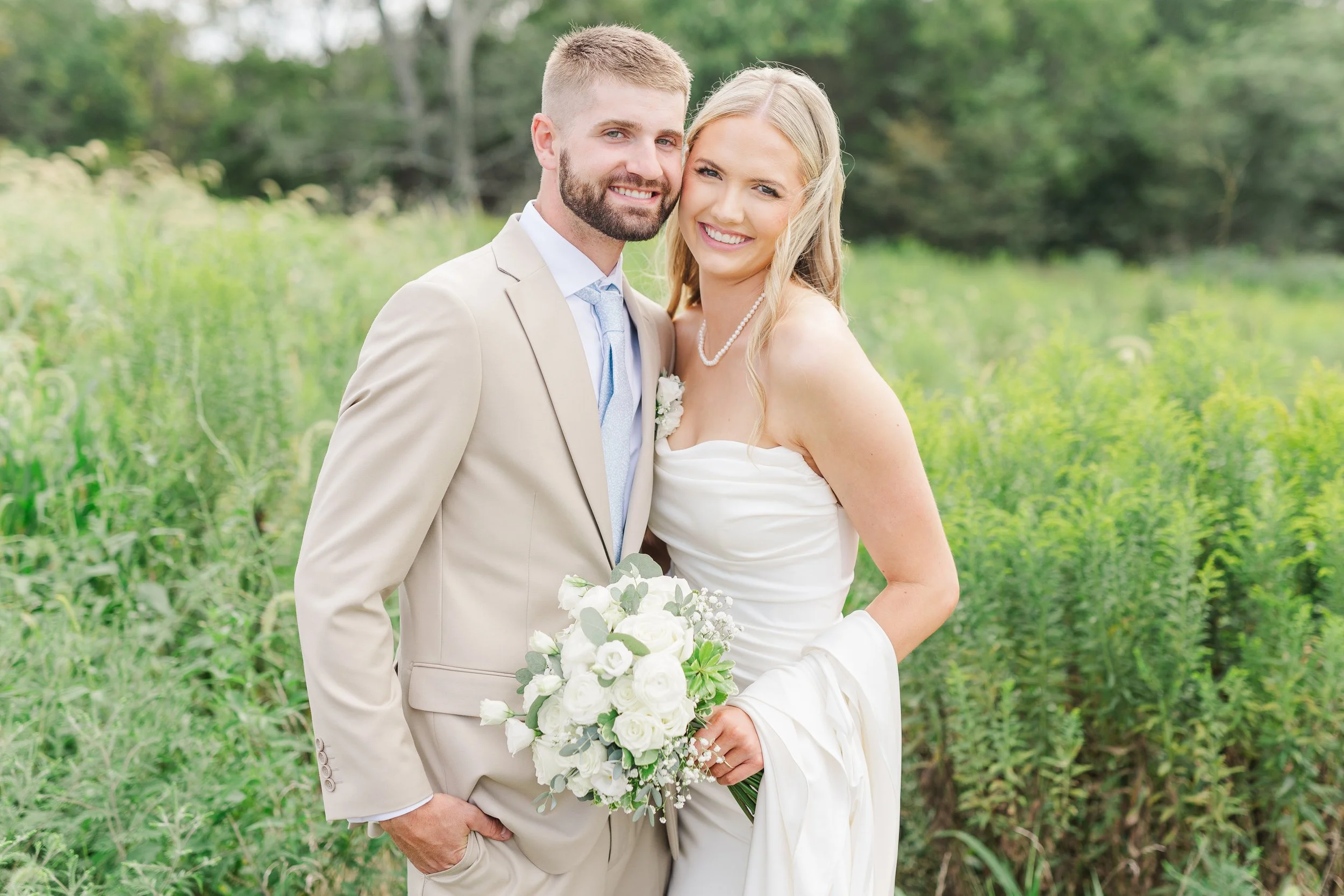 The couple were troopers though, willing to take pictures out in the light rain allowed us to capture some beautiful photos! Here’s a look at how their wedding unfolded, balancing the elegance of a summer day, and the stunning details of their wedding!
